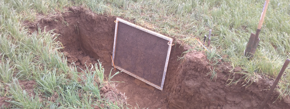 Dans chacun des essais, les observations ont été réalisées dans les mêmes passages de roues pour les différentes modalités. L’enracinement des cultures intermédiaires a été caractérisé à l’aide de profils racinaires. Des cartes racinaires sont dressées avec une maille de 2 cm de côté. Elles sont superposées aux profils culturaux décrivant quant à eux l’état structural du sol pour caractériser la relation entre l’enracinement des couverts et l’état structural.